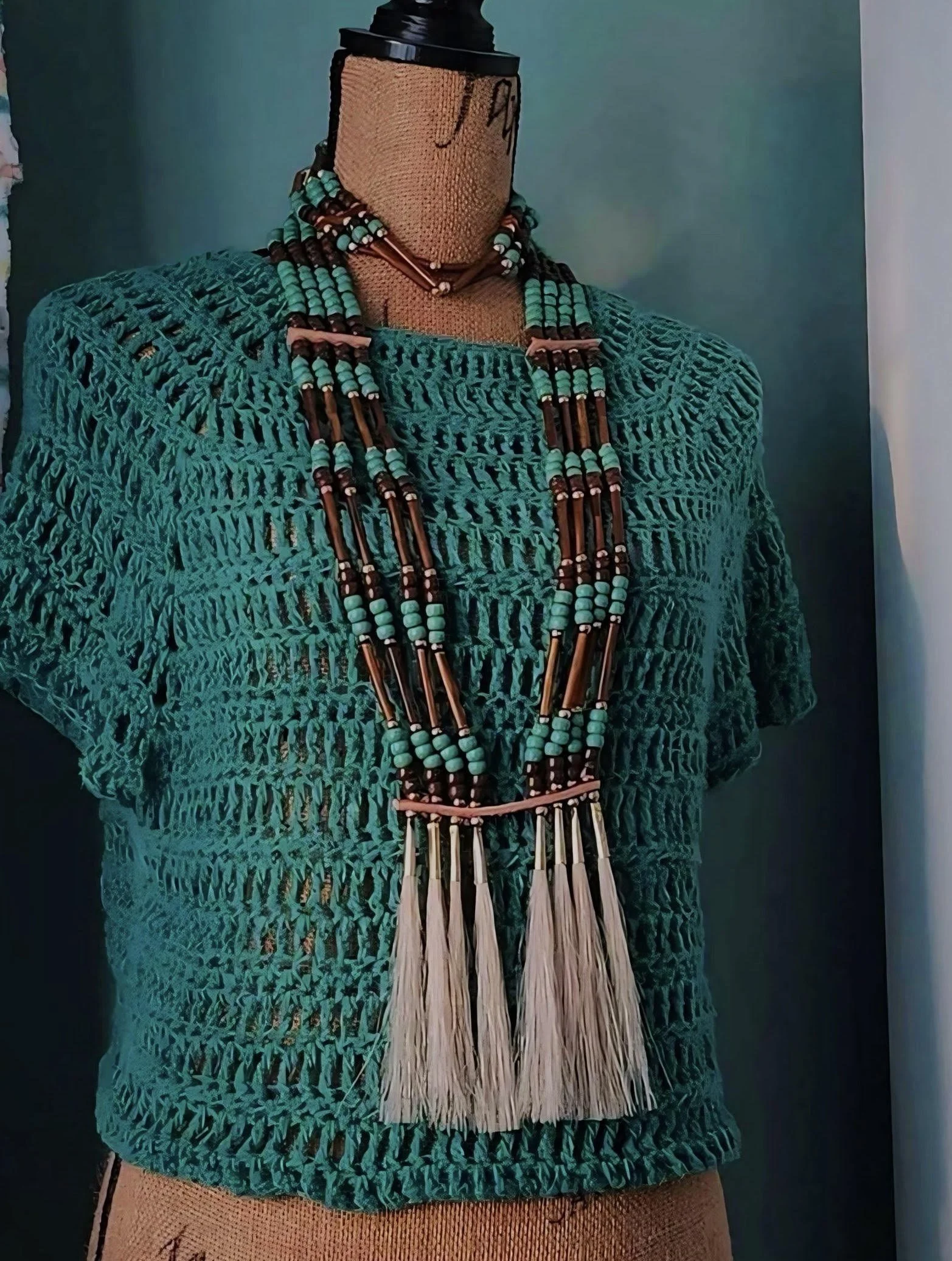 We create Key Chains, Necklaces, Chokers, Earrings, Bracelets, Breastplates and now learning how to make Leather Belts. We work with various Bones, Hides, Horse Hair mixed in with Wooden, Glass, Metal, Crystal and Swarovski Beads. We enjoy sharing the lessons we learned from our various creations and teach our extended relations to make a custom piece for themselves.